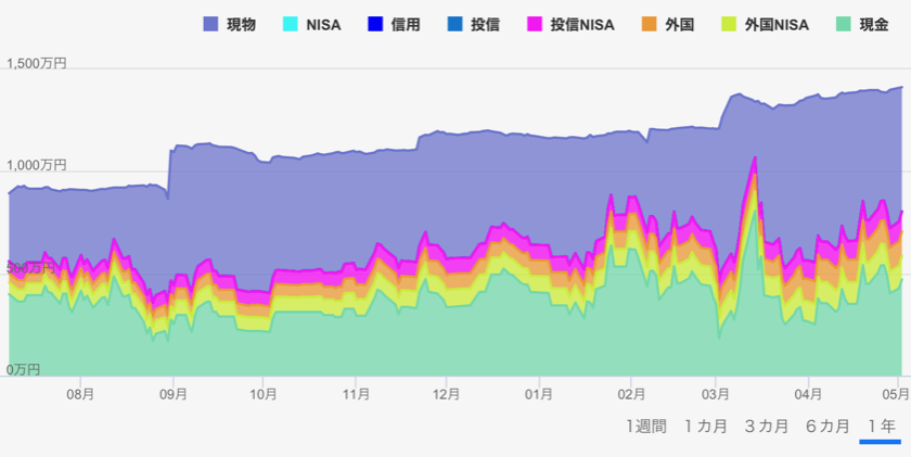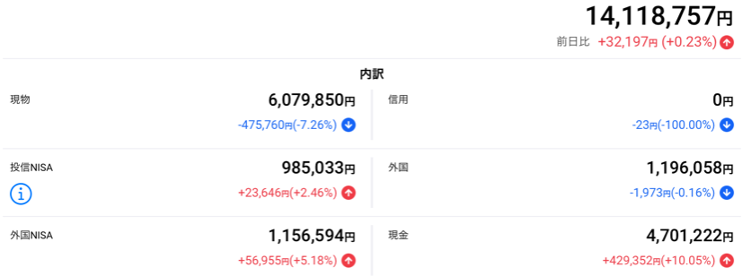 2023年は資産運用が順調で、すでに2022年の年間の利益に迫る勢いですが、運用資産についても2023年5月に入り、1400万円となりました。