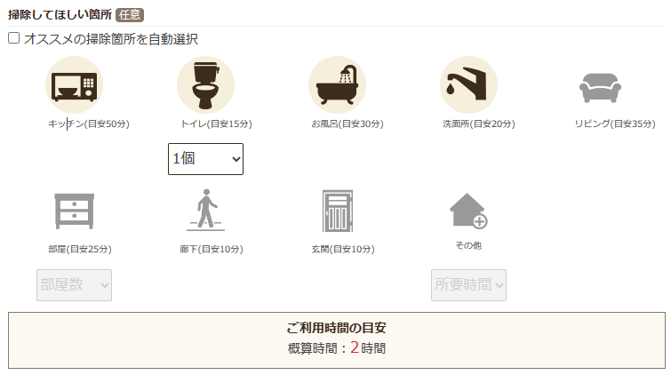 利用料金・サービスの選択・掃除する箇所