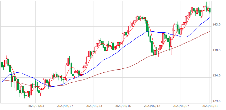 一方で、米ドル/円については、7月に138円まで円高になりましたが、その後は円安となり、8月はずっと円安傾向が続いています。