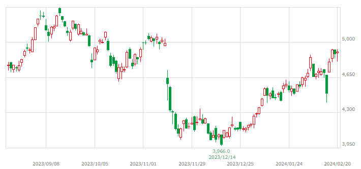 💹7591 ヤマハは、2024年2月の決算発表で業績がよくなかったこともあり、2024年2月時点では2023年12月下旬と同等の水準ですが、2024年1月は日本市場全体的な株高もあり、3100円台から3500円台に株価上昇しています。ただ、決算発表で業績が悪かったものの、自社株買いの公表もあって、決算発表直後は株価が急上昇し、そこで売却することができました。